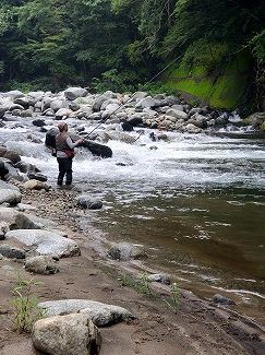 キャンプ場の裏で釣りをしています。